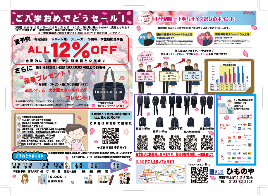 「ご入学おめでとうセール!」ご案内