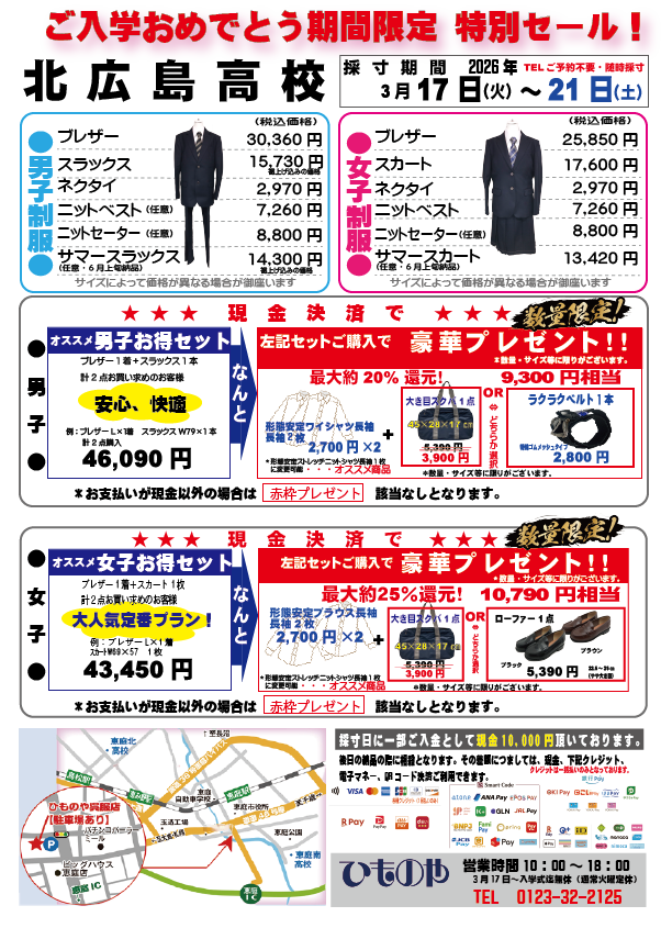 2026年度 北広島高校制服 新入生SALE